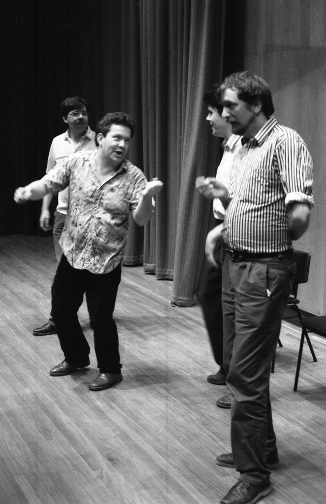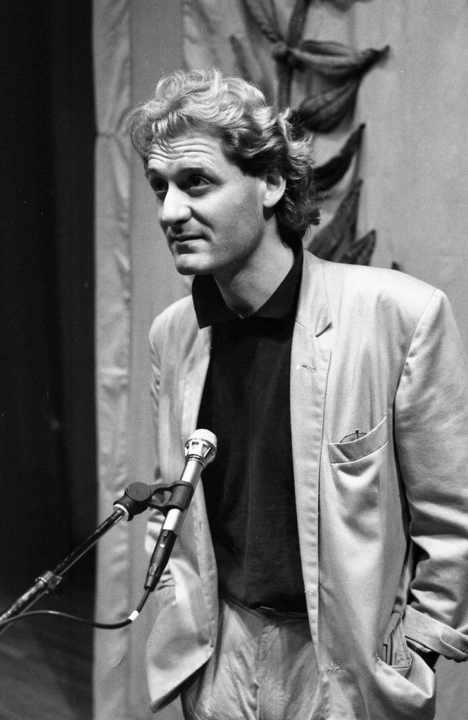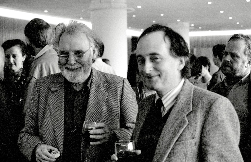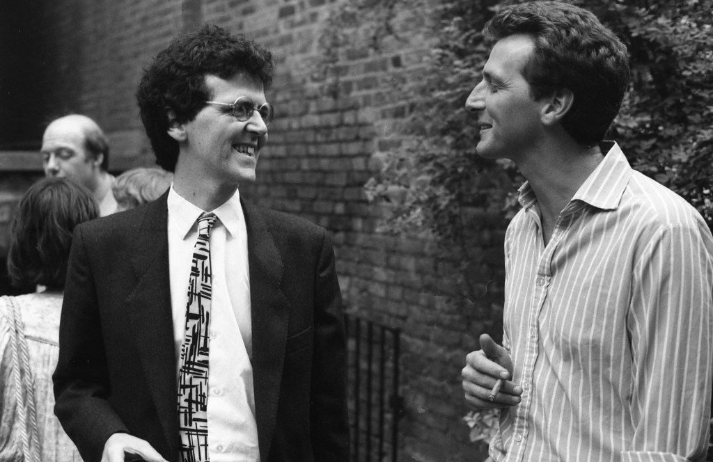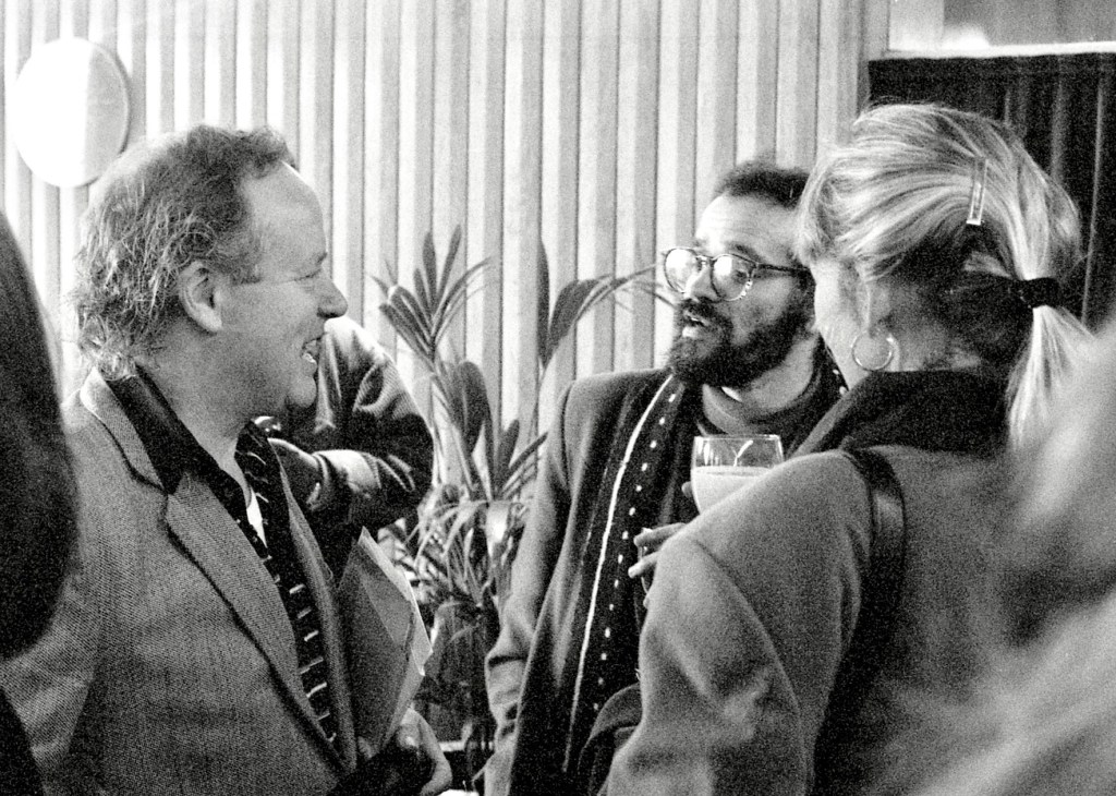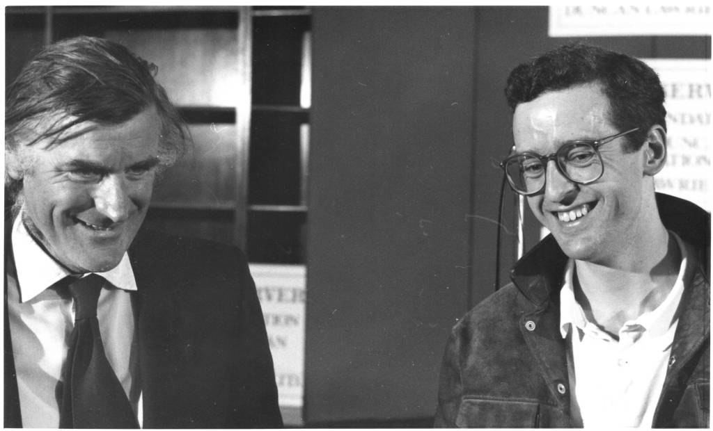 Tim & Terence DooleyGeorge Macbeth & Lisa St Aubin de TeranM.S. Power & Bernard MacLavertyAnthony Minghella & Peter FlanneryJames Berry & Peter ScuphamCarol Ann Duffy & Jo ShapcottPenelope Fitzgerald & Thomas HindePaul Muldoon & Michael Longley (Sarah Maguire in stripes)Tim Firth & Willy RussellMaura Dooley & Willy RussellBrendan Kennelly & John AgardGavin Ewart & Christopher ReidBerlie Doherty & Chris HawesPaddy Kitchen & Dulan BarberFred D’Aguiar & Jean Binta BreezeSelima Hill & Eddie LindenAlan Brownjohn & Fleur AdcockShirley Gee & Liane AukinHanif Kureishi & Caz PhillipsFrances Horovitz & Roger GarfittAlan Plater & Anthony MinghellaEmma Smith & Peter MortimerStephen Spender & Tom StoppardJanni Howker & Alan PlaterTed Hughes & Oliver Reynolds