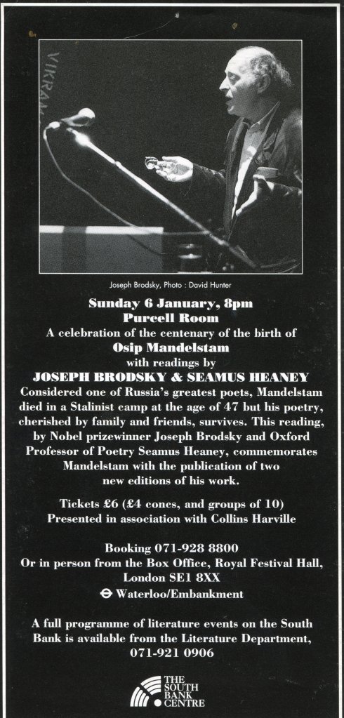 Somhairle MacGill-Eain/Sorley MacleanSean O’BrienPaul DurcanMichele RobertsMatthew SweeneyJohn Heath-StubbsKen SmithLemn SissayKamau BrathwaiteFred D’AguiarAndrew MotionCircus of PoetsSophia de Mello Breyner AndresenIfigenija Simonovic & Michael HorovitzAnne Stevenson